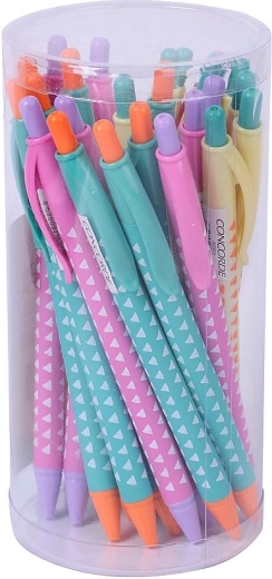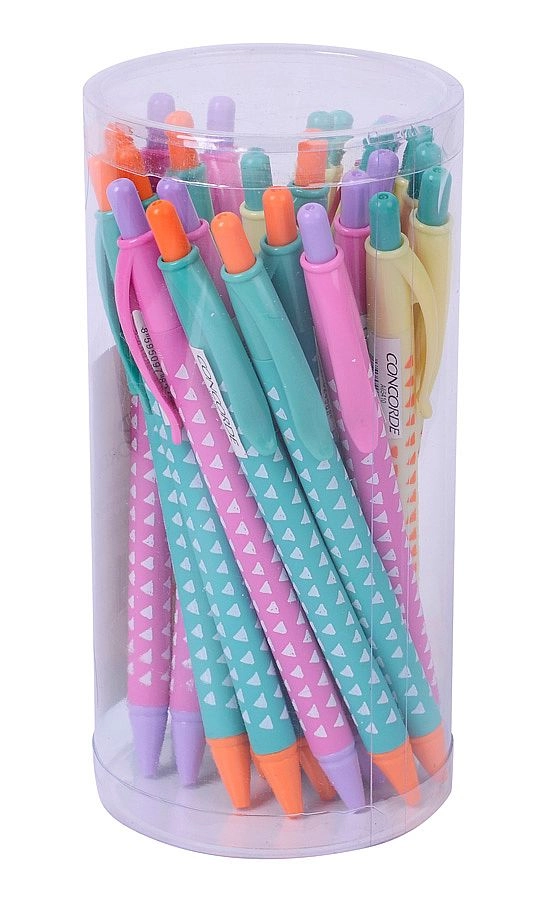 Stylo à bille CONCORDE Crazy au coloris pastel pour une écriture quotidienne confortable. Il offre une surface antidérapante avec un léger relief, une pointe fine de 0,7 mm pour un tracé fluide et la possibilité de remplacer la recharge Crazy. Livré en assortiment de 3 combinaisons de couleurs.