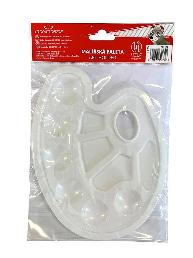 Pratique palette de peintre CONCORDE blanche avec au total 10 godets – 6 pour les couleurs et 4 pour le mélange. Fabriquée en plastique résistant et flexible, elle se tient et se transporte aisément grâce à ses dimensions compactes. Un excellent choix pour les créateurs amateurs et les étudiants en arts plastiques.