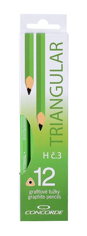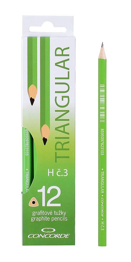 Ensemble de crayons graphite CONCORDE de qualité avec profil triangulaire pour une prise en main confortable et une écriture précise. Dureté H (n° 3) idéale pour le dessin technique, les lignes nettes et les contours précis. Mine graphite résistante, surface laquée et bois de tilleul écologique garantissant une longue durée de vie et une utilisation agréable. L’emballage contient 12 pièces dans une boîte en carton pratique.