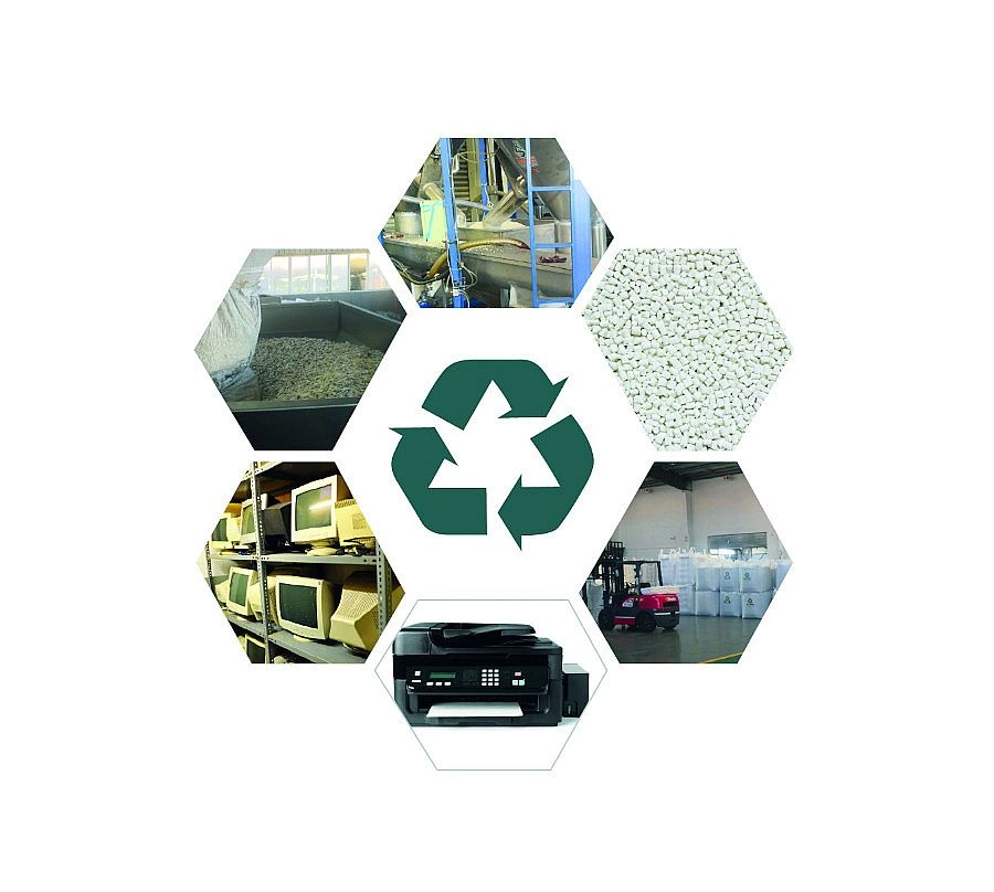 Les produits sont fabriqués à partir d’équipements de bureau recyclés. Le processus est suivi selon la norme GRS, ce qui favorise la réutilisation des matériaux et réduit l’empreinte écologique.