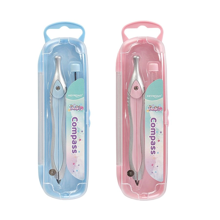 Découvrez le compas métallique fiable KEYROAD dans de délicates teintes pastel bleues ou roses. Grâce à sa construction robuste, il convient à l’école, au bureau et aux projets créatifs où précision et cercles nets sont requis. L’étui transparent pratique protège l’outil et les accessoires et facilite le rangement dans la trousse ou le sac.