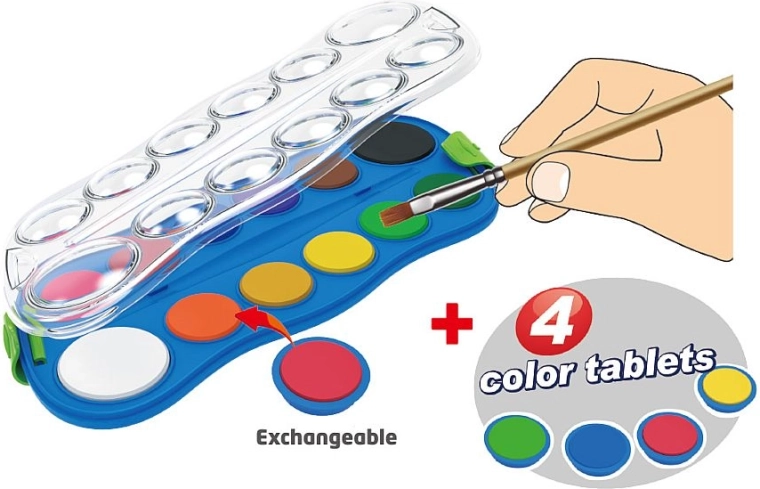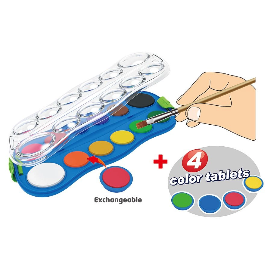 L’emballage comprend 12 couleurs de base complétées par 4 couleurs interchangeables, élargissant votre palette de possibilités. Les couleurs s’appliquent facilement, se mélangent bien et conviennent au papier ainsi qu’aux techniques artistiques à l’eau.