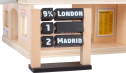 Découvrez une gare réaliste qui stimule l’imagination, le jeu de rôle et la motricité fine. Sa construction robuste en bois certifié FSC et ses détails bien pensés comme le distributeur de billets, le tableau des départs et la boutique garantissent des heures d’amusement. Le toit ouvert donne accès à toutes les zones de jeu et facilite le jeu simultané de plusieurs enfants.