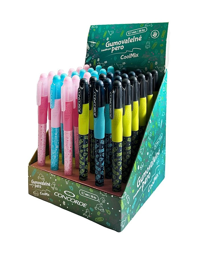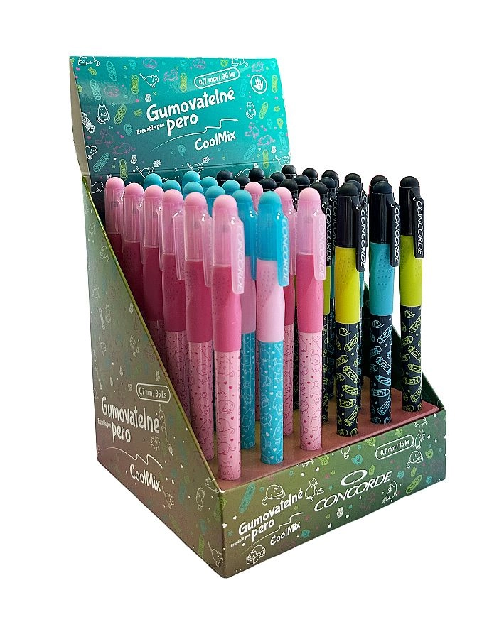 Vous cherchez un stylo avec lequel corriger ses erreurs est un jeu d’enfant ? CONCORDE CoolMix est un stylo effaçable à encre bleue fluide et trait de 0,7 mm, qui assure une écriture propre sans ratures. Grâce aux gommes placées à l’extrémité du stylo et sur le capuchon, vous effacez facilement le texte et poursuivez votre écriture.