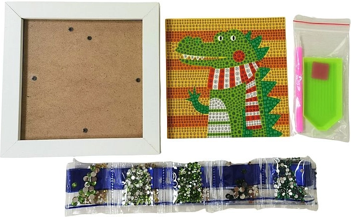 Ce kit créatif de peinture diamant sur le thème du crocodile ravira enfants et adultes. Grâce au modèle en couleur et à l’application simple des diamants à l’aide du stylet et du gel silicone, chacun peut réaliser une belle image étincelante. L’œuvre terminée peut être fièrement exposée dans le cadre blanc fourni.