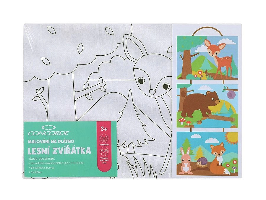 Découvrez un loisir créatif avec le kit de peinture CONCORDE aux motifs d’animaux de la forêt. Le kit comprend 3 toiles à suspendre 12,7 × 17,8 cm, 6 pots de peinture et un pinceau – idéal pour les enfants et les peintres débutants. Peignez selon le modèle ou laissez libre cours à votre imagination pour créer des tableaux uniques et colorés. La création apporte joie, détente et développe les capacités créatives.