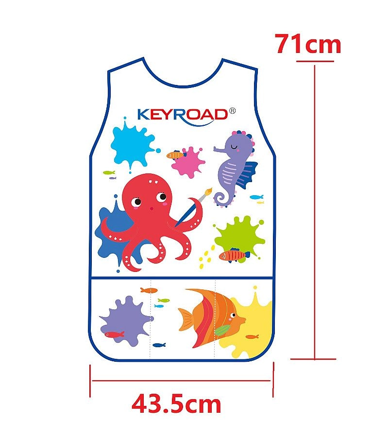 Pratique, le tablier sans manches pour peindre et bricoler de KEYROAD protège les vêtements de la saleté grâce à sa surface imperméable et facilement lavable. Il offre trois poches spacieuses pour pinceaux et crayons, une coupe confortable et un joyeux design sous-marin pour les enfants du primaire.
