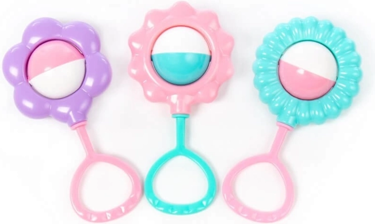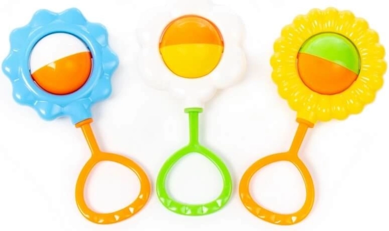 Découvrez avec votre bébé un monde de sons et de couleurs grâce à des hochets conçus pour les premières stimulations sensorielles. Chaque hochet possède un disque central bicolore rotatif qui émet un son agréable en mouvement et incite l’enfant à saisir et à secouer. Des bords lisses et arrondis ainsi qu’une structure plastique légère assurent une utilisation sûre et confortable.