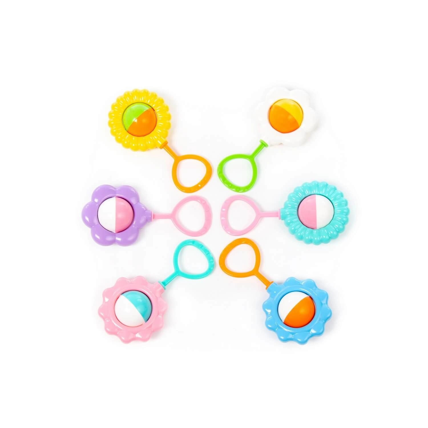 De joyeux hochets pour enfants en forme de fleur stimulent la vue, l’ouïe et la motricité fine. Grâce à leur conception légère et sûre avec une boucle de préhension ergonomique, ils se tiennent facilement même par les plus petites mains. Les formes et couleurs variées invitent à l’exploration et sont idéales pour jouer au quotidien, à la maison comme en déplacement. Disponibles en 6 modèles différents. Prix pour 1 pièce.