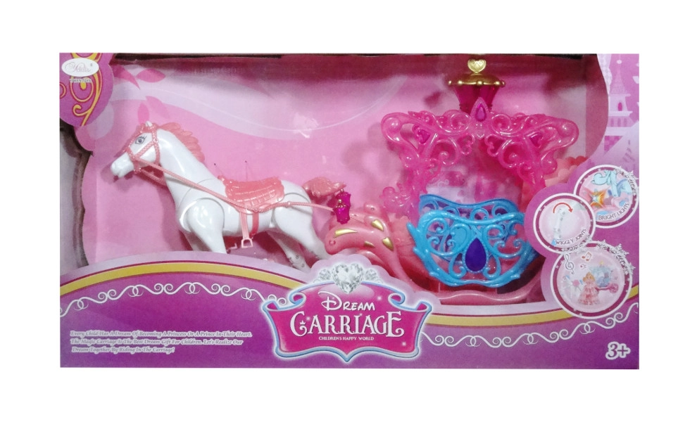 Ce carrosse élégant avec cheval est l’accessoire idéal pour tous les petits amoureux des poupées. Les enfants adoreront emmener leur poupée en excursion au pays des rêves, tandis que le carrosse brille de petites lumières colorées et crée une atmosphère magique.
