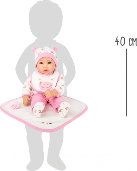 La poupée Hanna est un excellent choix pour une première poupée. Grâce à son corps souple, elle est légère, agréable au toucher et tient parfaitement même dans les petites mains. Les détails réalistes du visage avec de beaux yeux fixes rendent le jeu plus crédible et favorisent le développement émotionnel.