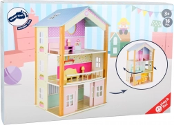Cette élégante maison de poupée avec base rotative transforme chaque jeu en une histoire féerique. Grâce au disque tournant, toute la maison est facilement accessible de tous les côtés, permettant aux frères et sœurs de jouer en même temps. Elle offre trois étages, un équipement riche comprenant 15 pièces de mobilier en bois, des portes coulissantes et des murs décorés imprimés. Convient aux poupées jusqu’à 12 cm, fabriquée en bois de qualité pour une longue durée de vie et un jeu en toute sécurité.