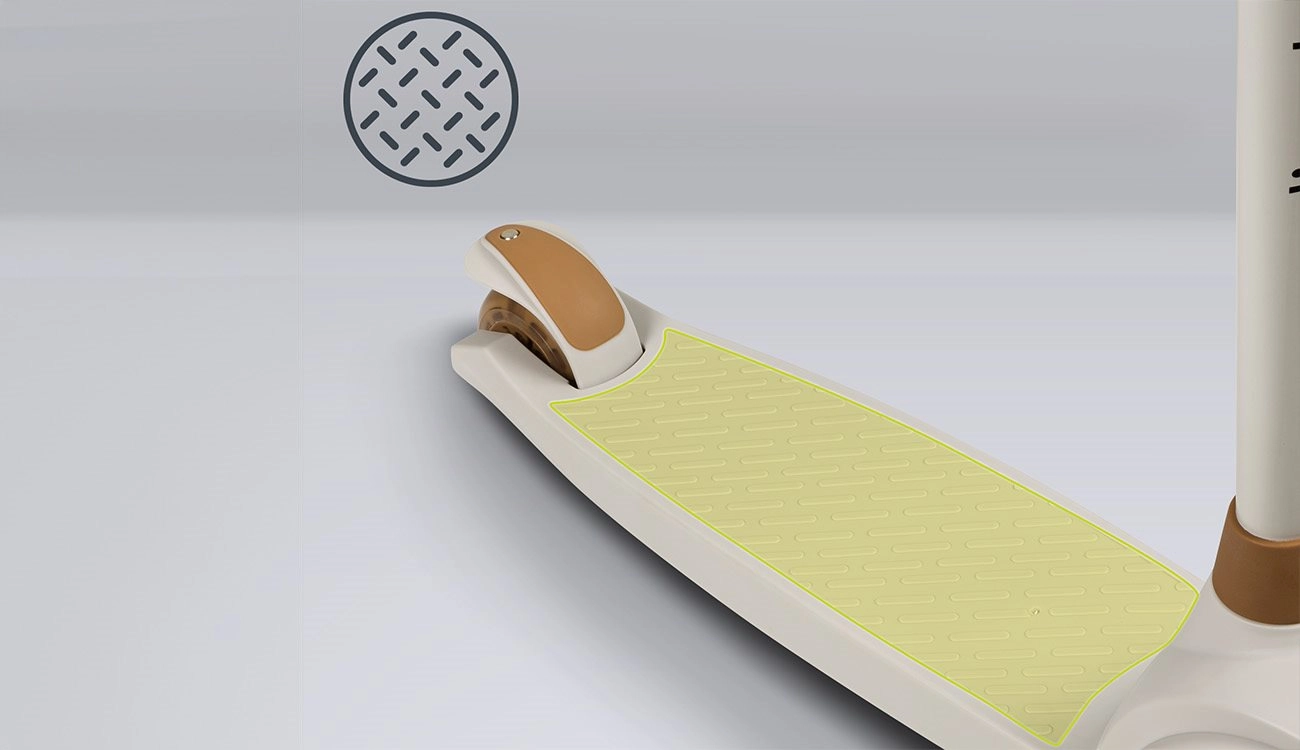 Deux roues avant et un plateau large assurent une excellente stabilité, un apprentissage facilité et une conduite plus sûre même pour les tout premiers essais.