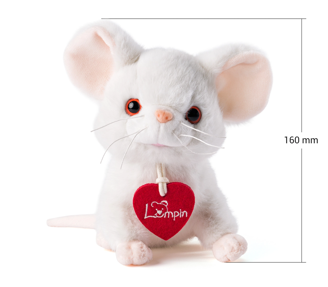 La mignonne souris en peluche Petit d’une hauteur de 14 cm ravira les enfants comme les collectionneurs. Elle est douce et moelleuse et, grâce à sa position assise, garde parfaitement sa forme sur une étagère ou dans la chambre d’enfant. Chaque peluche possède son propre nom et son histoire dans le petit livret inclus et porte autour du cou un petit cœur rouge caractéristique.