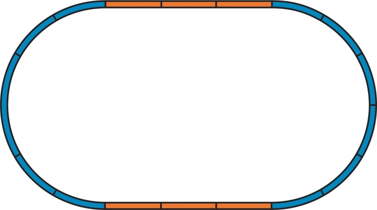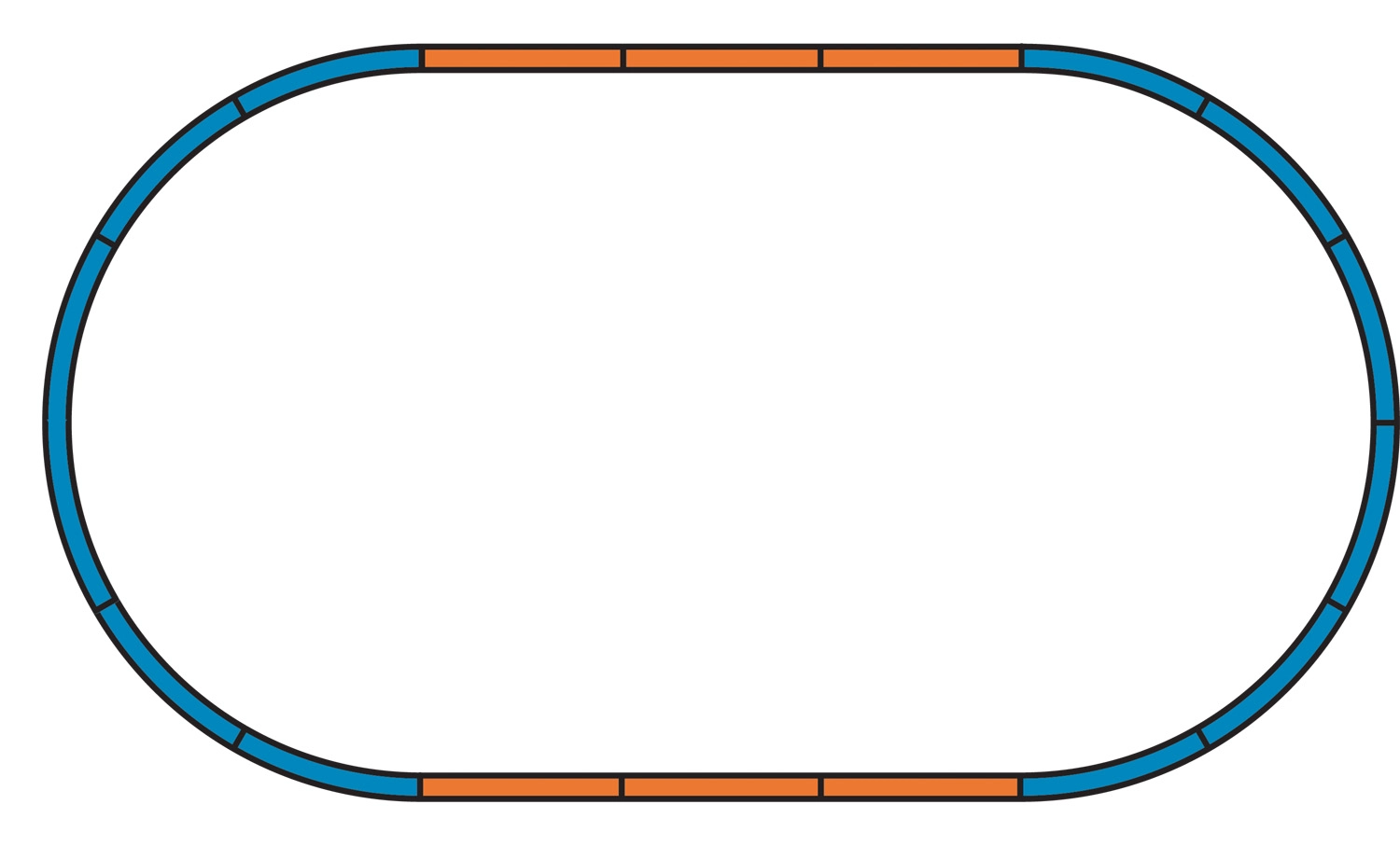 L’ovale de base avec rayon minimal de 358 mm s’intègre dans les petits espaces et peut être étendu à tout moment avec des aiguilles et des éléments supplémentaires.