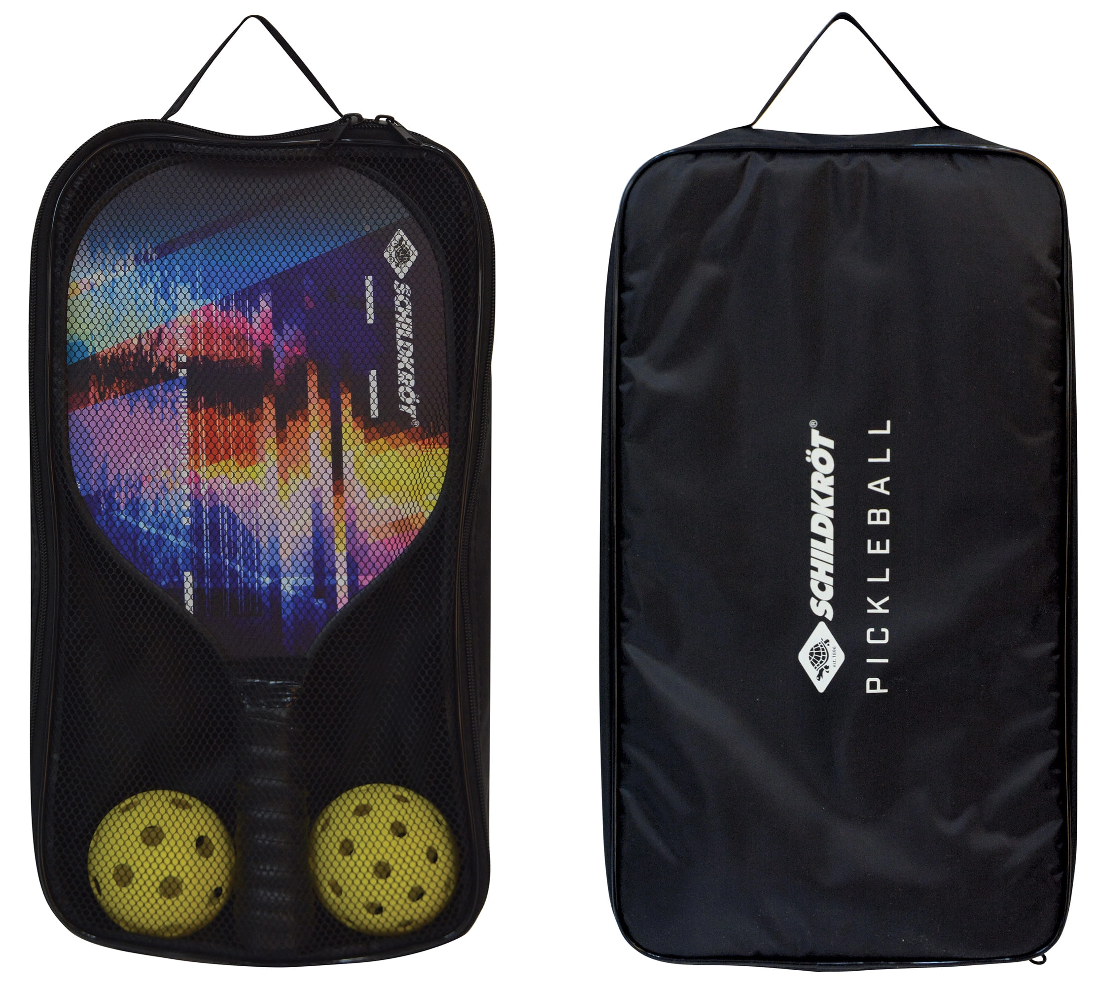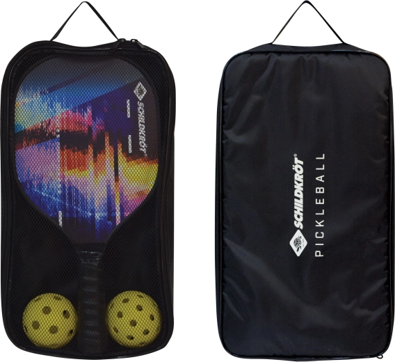Profitez du pickleball partout et à tout moment avec le set complet SCHILDKRÖT pour 2 joueurs. Il comprend 2 raquettes en bois robustes, 2 balles pour le jeu en extérieur et en intérieur et un sac de transport pratique. Grâce au grip antidérapant absorbant la transpiration et à la protection des bords, les raquettes sont confortables et durables. Idéal pour les débutants comme pour les avancés, enfants comme seniors — un jeu au rythme plus doux que le tennis, mais tout aussi amusant.