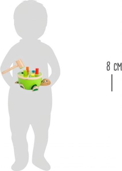 Les enfants enfoncent les chevilles colorées dans la carapace de la tortue tout en entraînant la prise, la précision et la coordination œil-main. L’effet pop-up garantit un amusement sans fin.