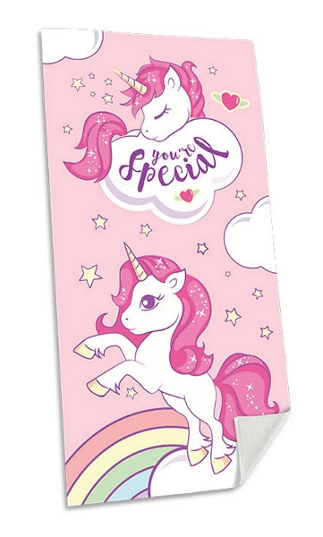 Serviette stylée avec un motif magique de licorne et l’inscription You're special, qui ravira enfants et adultes. Idéale pour la plage et la salle de bain, elle a un format pratique de 70 × 140 cm et séduit par son imprimé coloré avec arc-en-ciel et nuage.