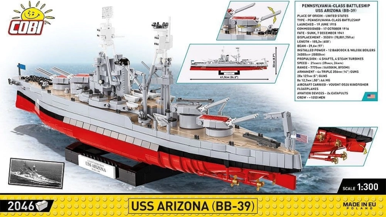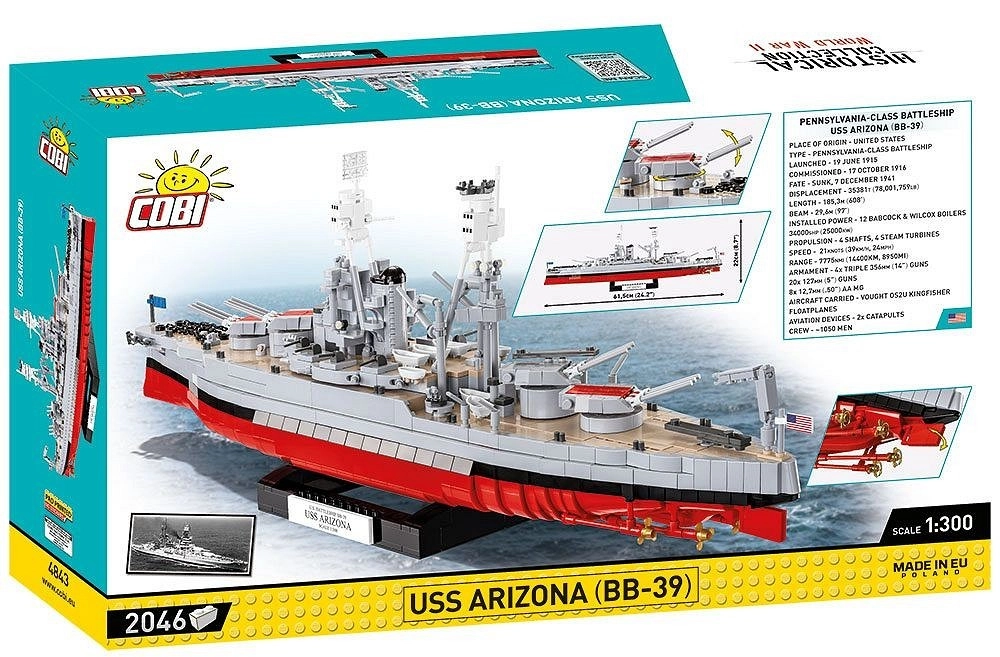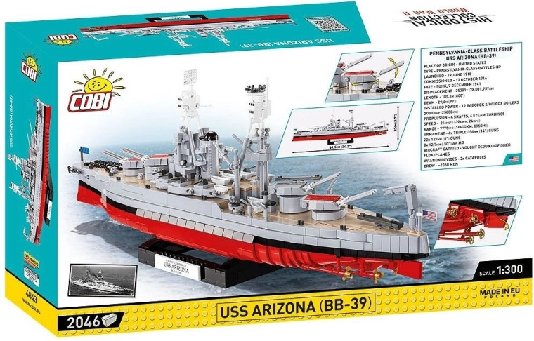 Le légendaire cuirassé USS Arizona, symbole des événements de Pearl Harbor, est proposé ici en kit fidèlement reproduit à l’échelle 1:300, pour une longueur d’environ 61,5 cm. Grâce à des techniques de construction avancées, le modèle respecte avec précision les proportions, la forme caractéristique de la coque et des superstructures, et ravira les collectionneurs comme les passionnés d’histoire navale.
