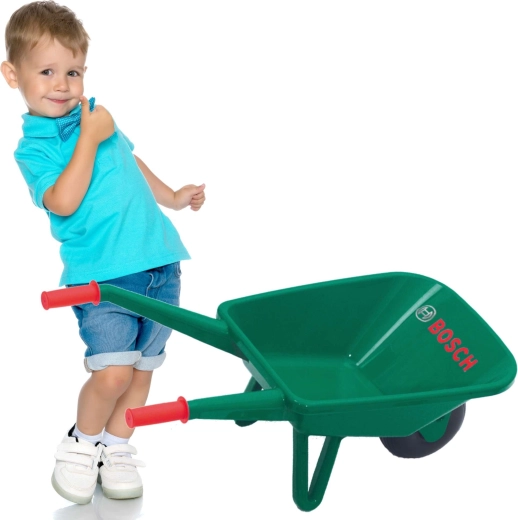 La brouette pour enfants BOSCH mini est conçue pour les petits assistants qui souhaitent imiter les adultes au jardin. Elle se distingue par sa légèreté, sa facilité de maniement et sa construction en plastique durable de couleur verte avec le logo BOSCH. Grâce à sa caisse profonde, les enfants transportent aisément de petites charges, des jouets, des pommes ou du matériel de jardin.