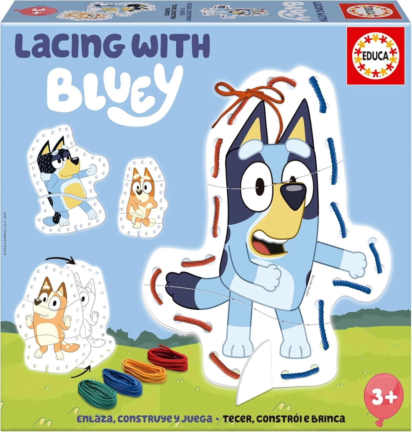 Découvrez un amusant coffret de laçage sur le thème de BLUEY, qui développe la motricité fine, la créativité et la patience. Grâce à des lacets colorés et de grandes pièces en carton, les enfants assemblent facilement leurs propres personnages tout en apprenant la concentration et en renforçant leurs capacités cognitives. Des matériaux sûrs en carton certifié et textile sans substances toxiques assurent un jeu en toute sérénité.