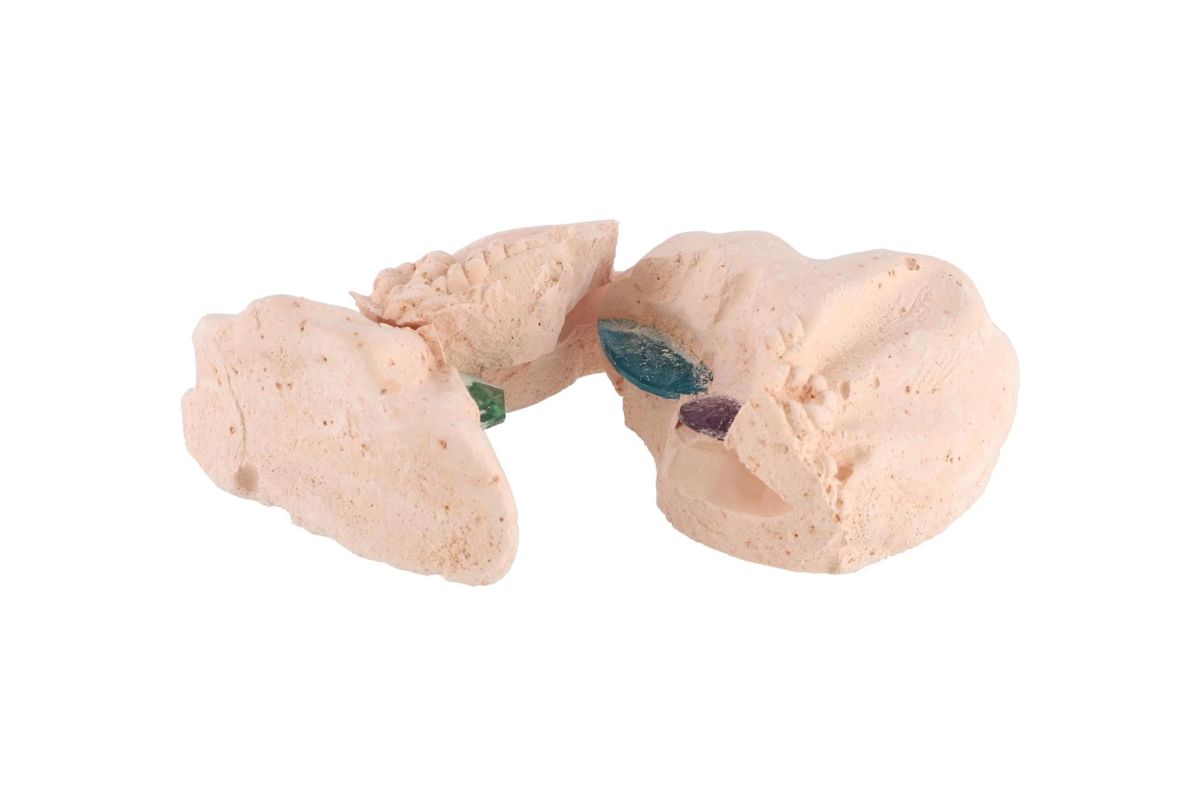 Le mélange spécial du bloc s’effrite facilement et permet aux enfants de libérer en toute sécurité la gemme dissimulée sans grand effort.