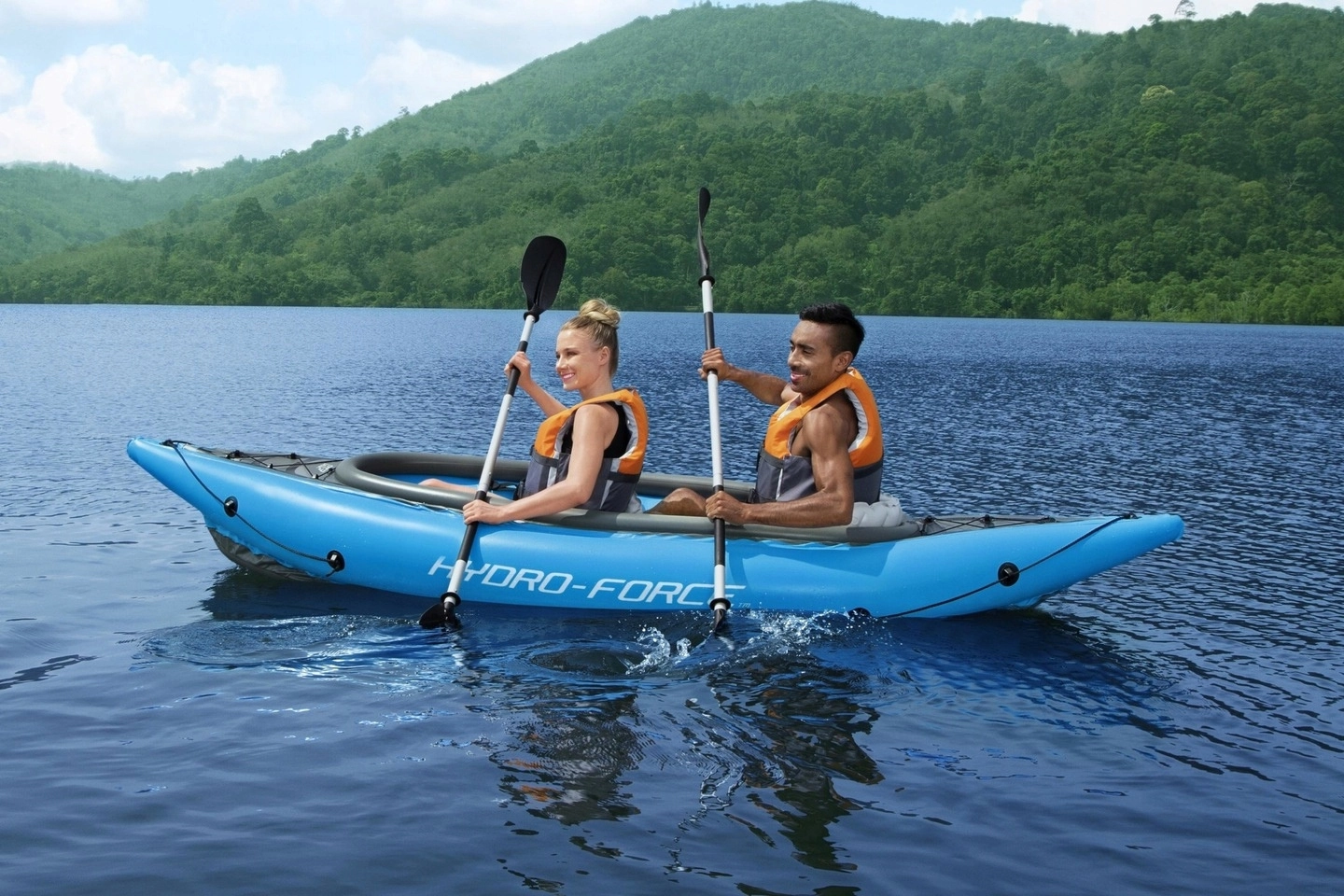 Le kayak gonflable Hydro‑Force Cove Champion X2 est idéal pour la randonnée récréative sur lacs et rivières calmes. Le pack inclut tout ce qu’il faut : 2 pagaies double pale, une pompe manuelle Air Hammer, 2 sièges gonflables réglables avec dossier et un sac de transport. Sa construction robuste multi‑chambres avec plancher gonflable rigide assure stabilité et confiance sur l’eau.