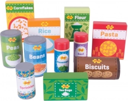 Enrichissez le jeu des enfants et enseignez-leur une alimentation saine et équilibrée avec ce ludique ensemble alimentaire en bois. Les enfants apprennent d'où vient la nourriture et comment la préparer. L'ensemble est idéal pour soutenir le jeu créatif et imaginatif.