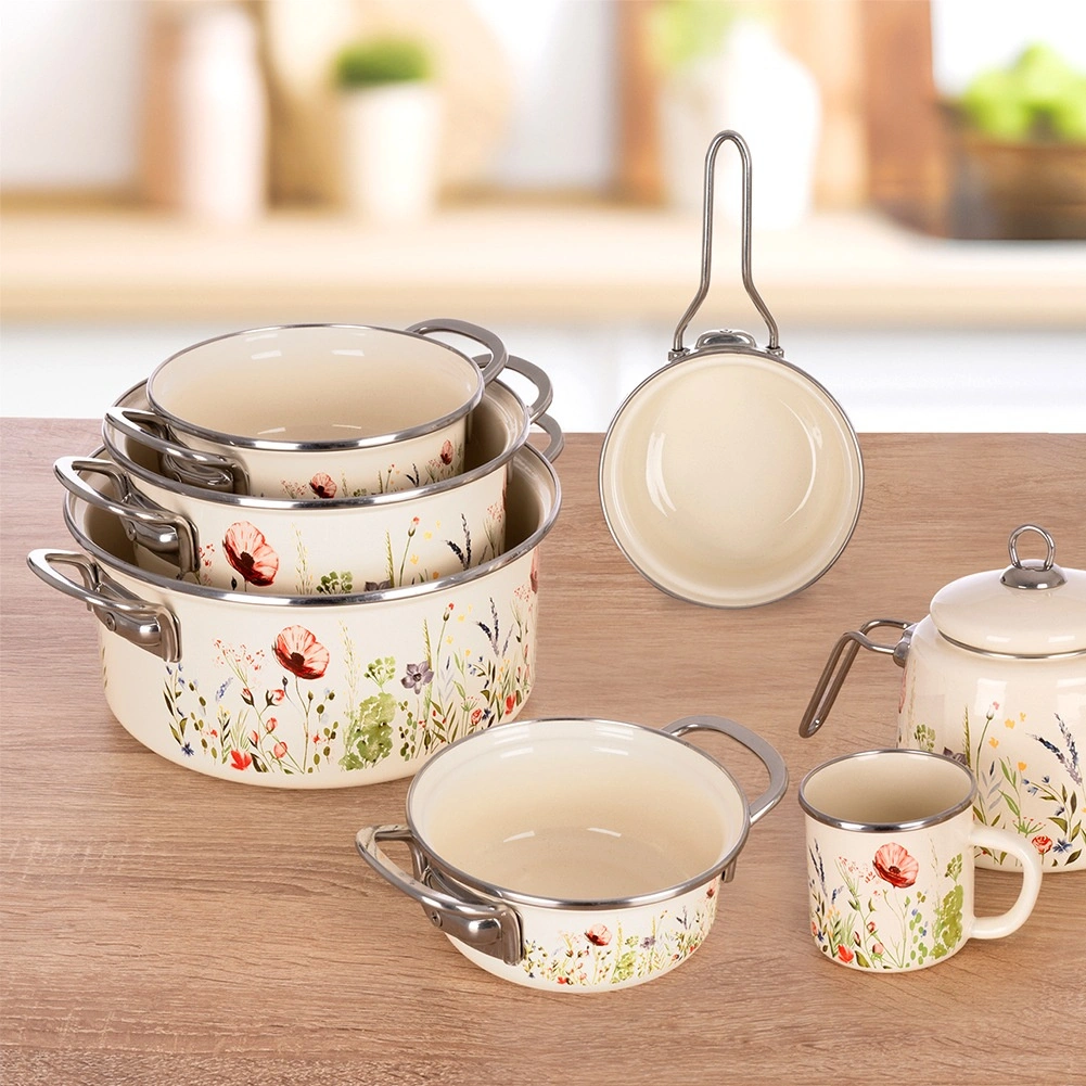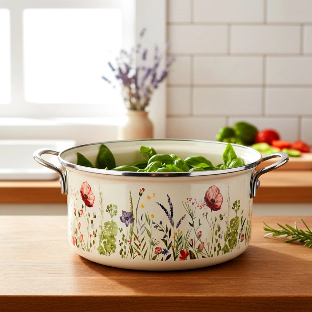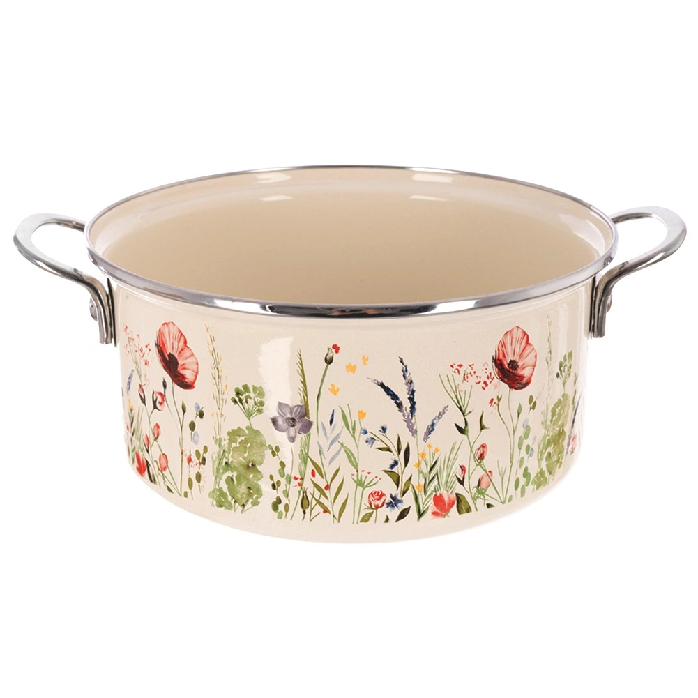 Cette marmite rétro appréciée associe acier émaillé résistant et motif décoratif de fleurs des champs. Parfaite pour la préparation quotidienne de soupes, sauces et accompagnements, et grâce à son large bord, elle permet de mélanger et de servir confortablement directement à table.