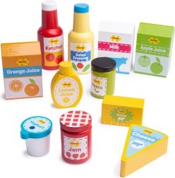 Des pièces colorées et détaillées comme du ketchup, des jus, du lait, de la confiture, du beurre, du pesto, du fromage et du yaourt stimulent l’imagination et apprennent aux enfants à reconnaître les aliments.