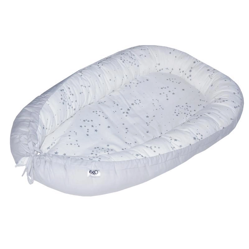 Ce nid en coton est réversible, vous pouvez donc changer facilement son apparence selon votre humeur. Il est léger, peu encombrant et idéal à la maison comme en voyage – vous l’utiliserez dans le lit, sur le canapé et comme tapis de jeu moelleux. Des accessoires assortis au même design peuvent également être acquis pour harmoniser la chambre de bébé.