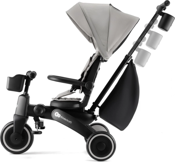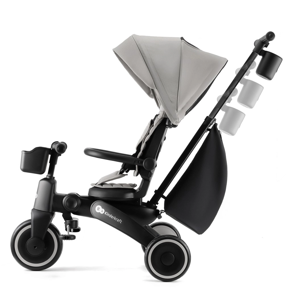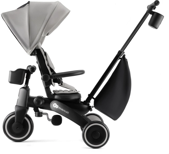 Un sac spacieux à cordon pour jouets et petits objets, une sonnette et une poignée parentale pour un contrôle aisé sont inclus. Grâce à son faible poids de 7,2 kg, le tricycle se manipule facilement à la maison comme en déplacement.