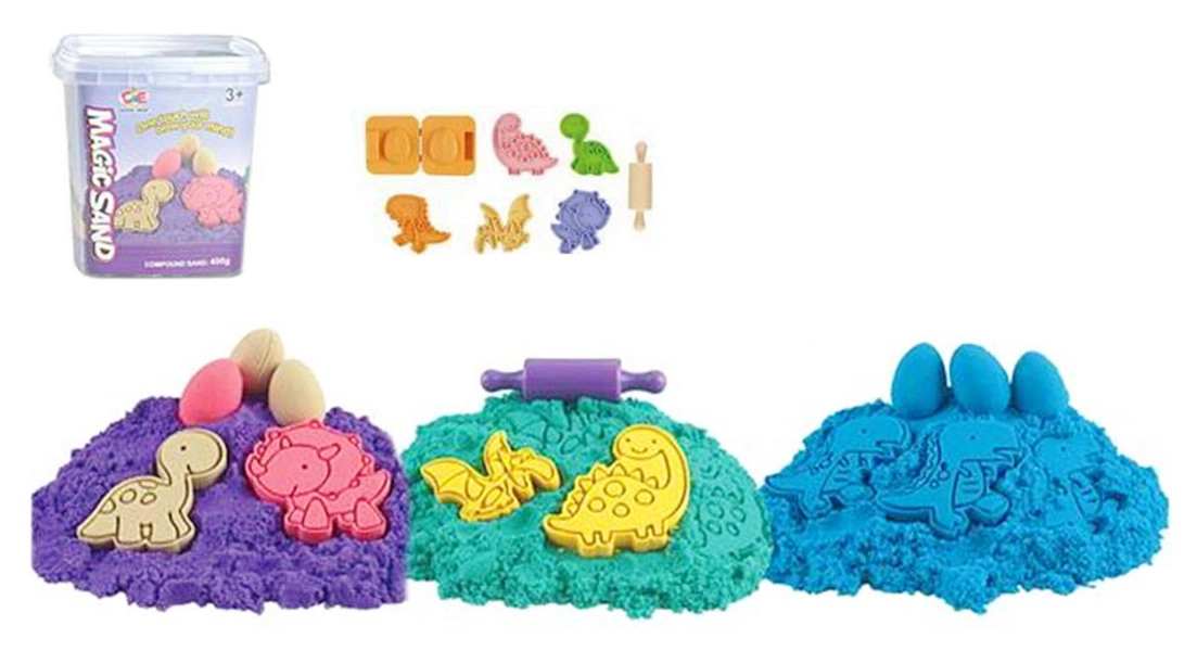 Le sable cinétique 3D se comporte comme du sable mouillé, mais ne sèche jamais, se façonne facilement et ne salit ni les mains ni la surface. Il favorise la créativité et la motricité fine des enfants et, grâce aux moules et au rouleau inclus, permet de créer aisément des formes originales. Le coffret comprend 2 couleurs de sable pour un jeu encore plus amusant.