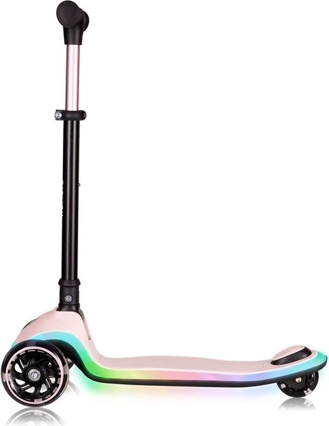 La trottinette pour enfants élégante LIONELO Mey Pink Rose offre une conduite stable grâce à ses trois roues et à son système de direction par inclinaison. Elle propose un éclairage LED multicolore sur le plateau, des roues avant lumineuses, un guidon réglable en hauteur sur 4 niveaux et une structure pliable pour un transport facile. Le plateau antidérapant et une capacité de charge jusqu’à 50 kg garantissent sécurité et longévité.