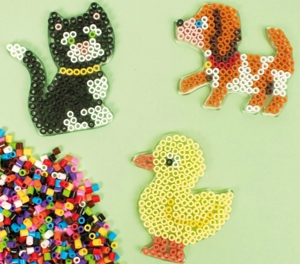 Plaques transparentes pour perles à repasser Ø 5 mm de la marque PLAYBOX, qui facilitent la création de motifs colorés d’animaux. Elles sont résistantes, réutilisables et, grâce à leur transparence, fonctionnent parfaitement avec des gabarits. Idéales pour les activités créatives à la maison, à l’école et en atelier – elles aident à développer la motricité fine et l’imagination.