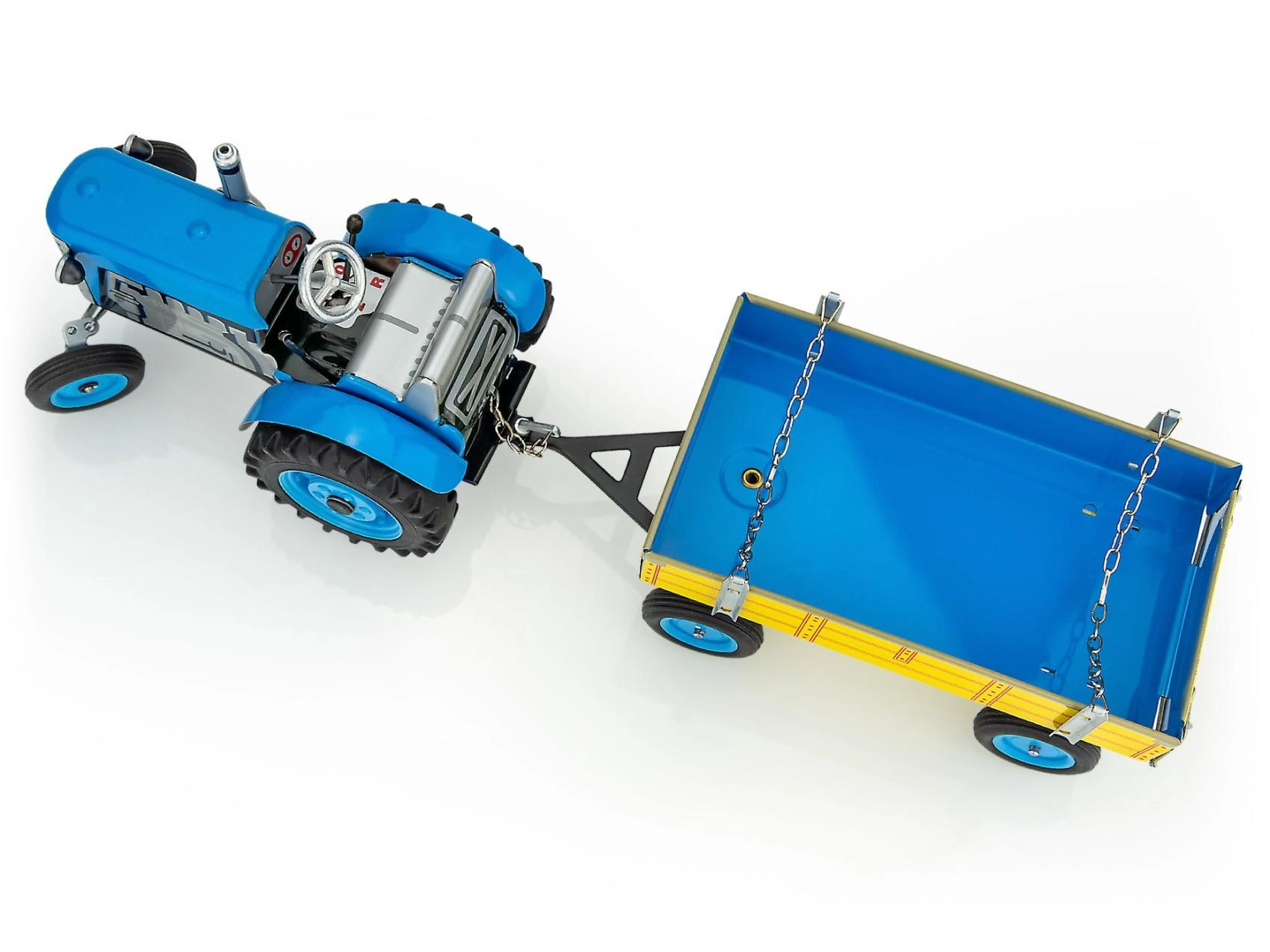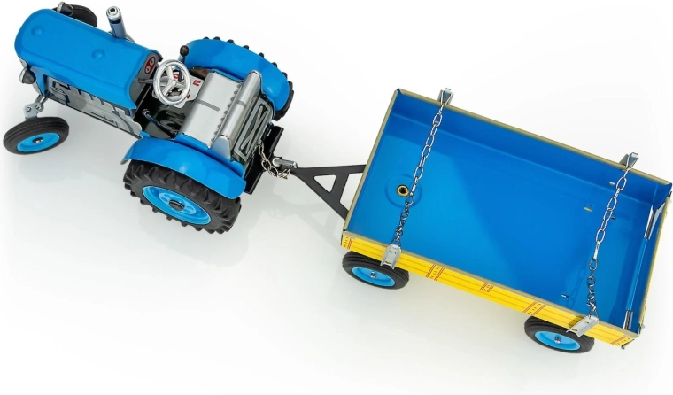 Le tracteur ZETOR en métal avec remorque à clé ravira les petits comme les grands fans de jouets classiques. Il propose une boîte de vitesses fonctionnelle avec 3 rapports avant, marche arrière et point mort, ainsi qu’un frein manuel. Sa fabrication métallique de qualité à l’échelle 1:25 et sa longueur de 28 cm garantissent robustesse et réalisme de jeu.