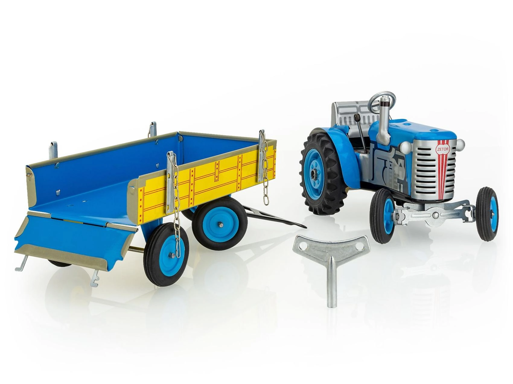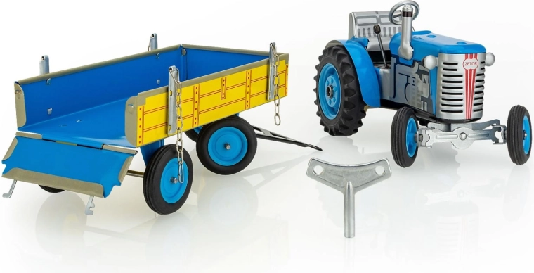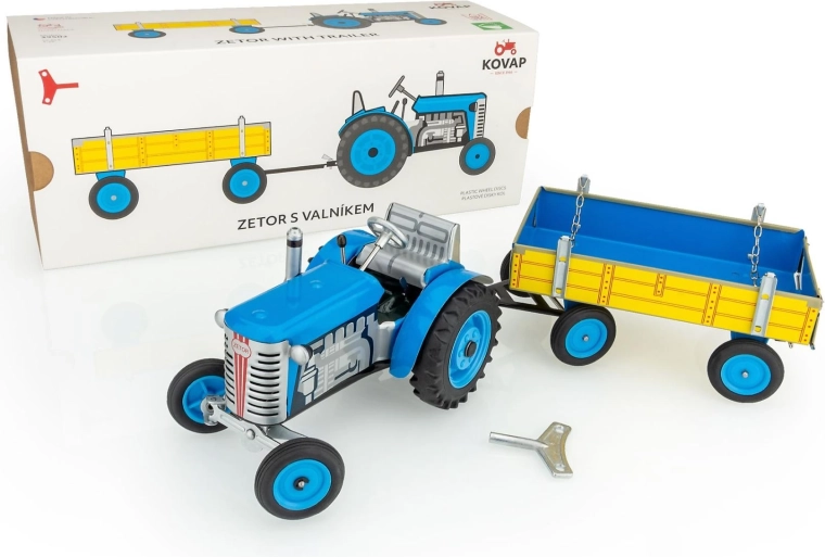 Tracteur Zetor avec remorque à clé en métal 28 cm KOVAP – Bleu