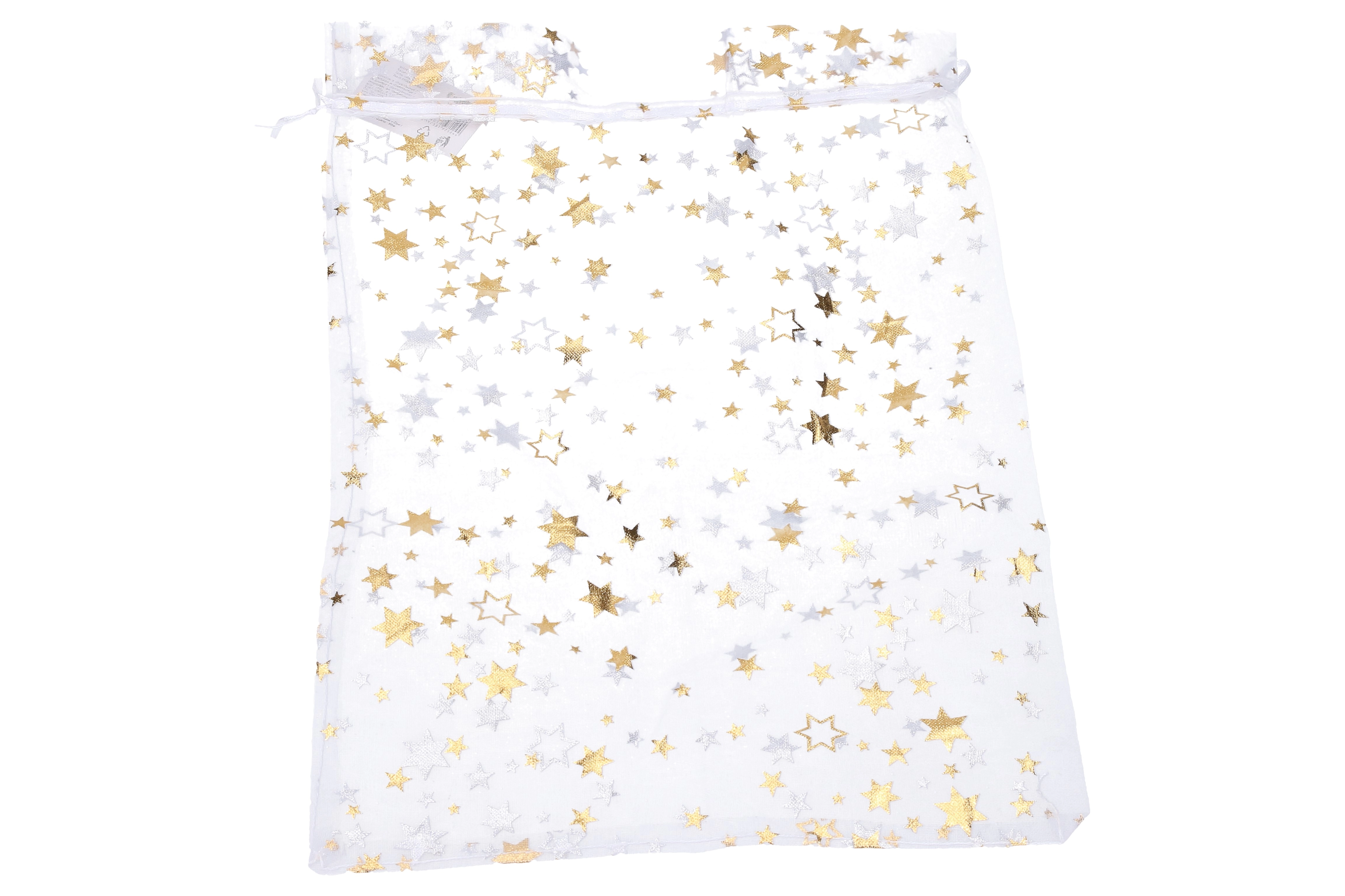 Donnez un aspect féérique à vos cadeaux avec ces pochettes en organza ornées d’étoiles argentées et dorées. Leur structure translucide laisse entrevoir délicatement le contenu, tandis que les étoiles métalliques offrent un éclat festif et raffiné.