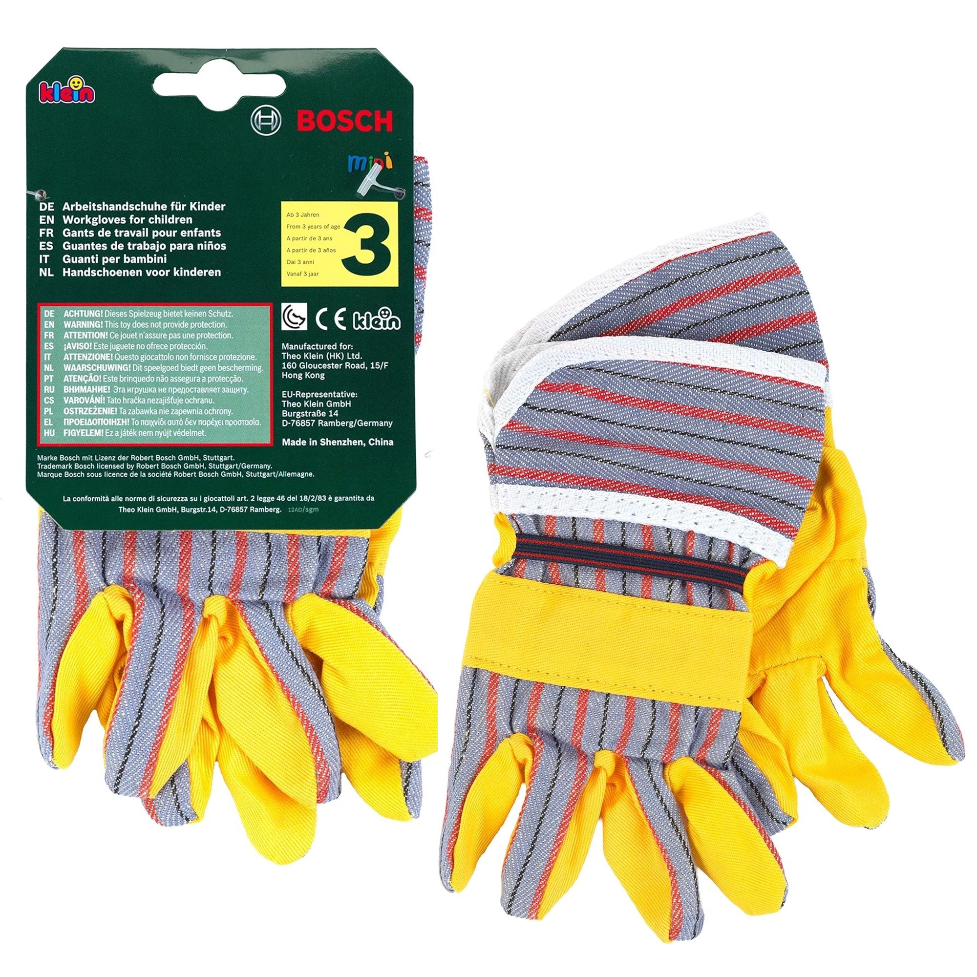 Ces gants pour enfants sont fabriqués sous licence BOSCH mini et se distinguent par une confection textile résistante avec doigts renforcés. Grâce à leur taille universelle et à leurs manchons extensibles, ils s’adaptent bien aux mains des enfants et favorisent un jeu sûr et réaliste.