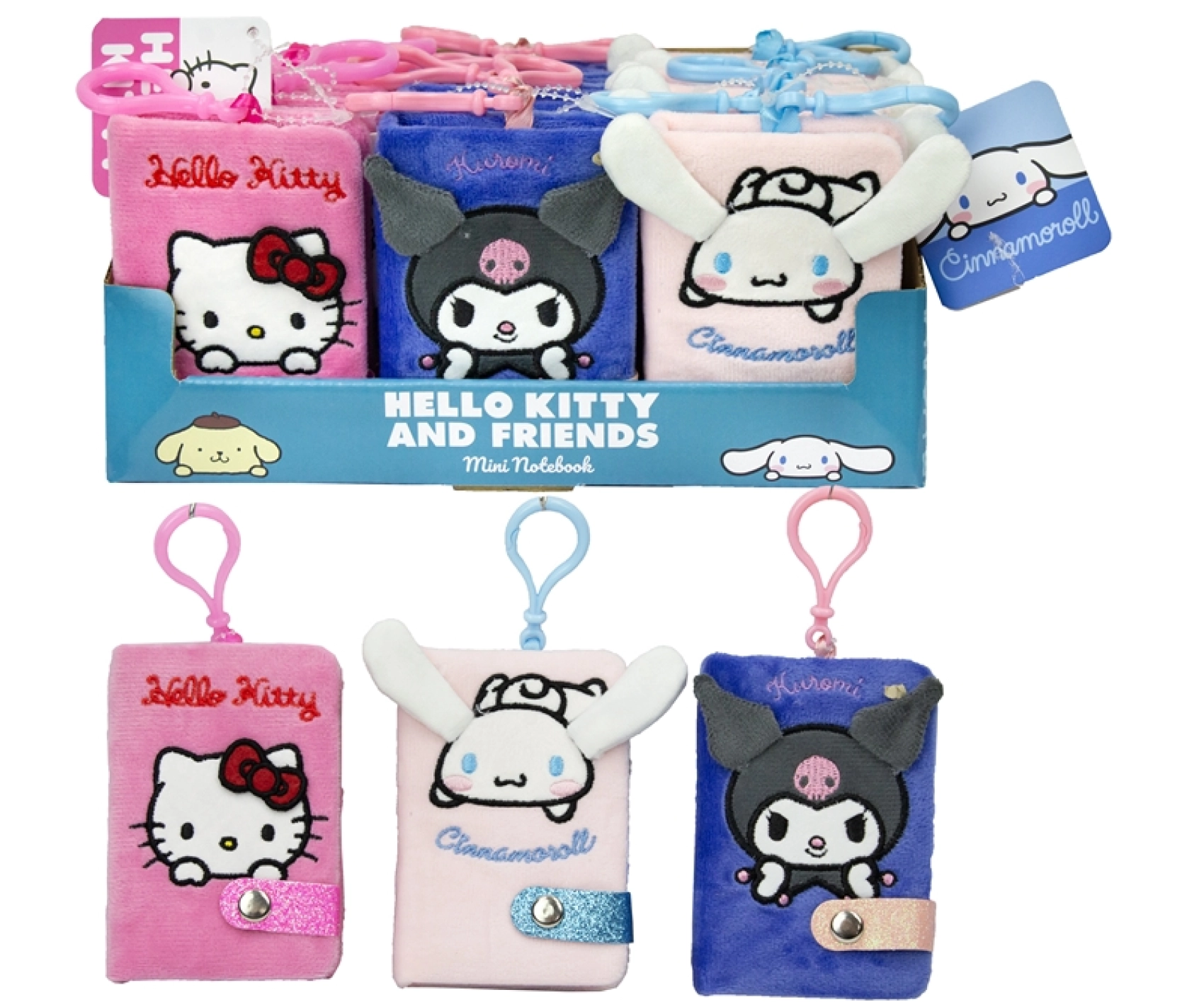 - Mini carnet avec surface en peluche et clip/mousqueton