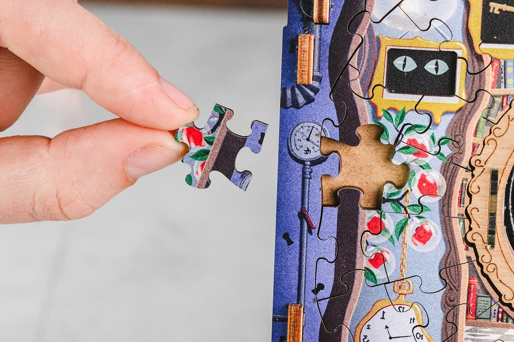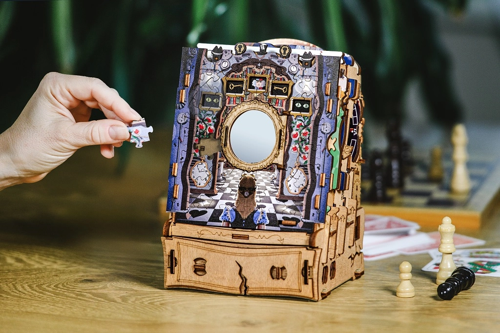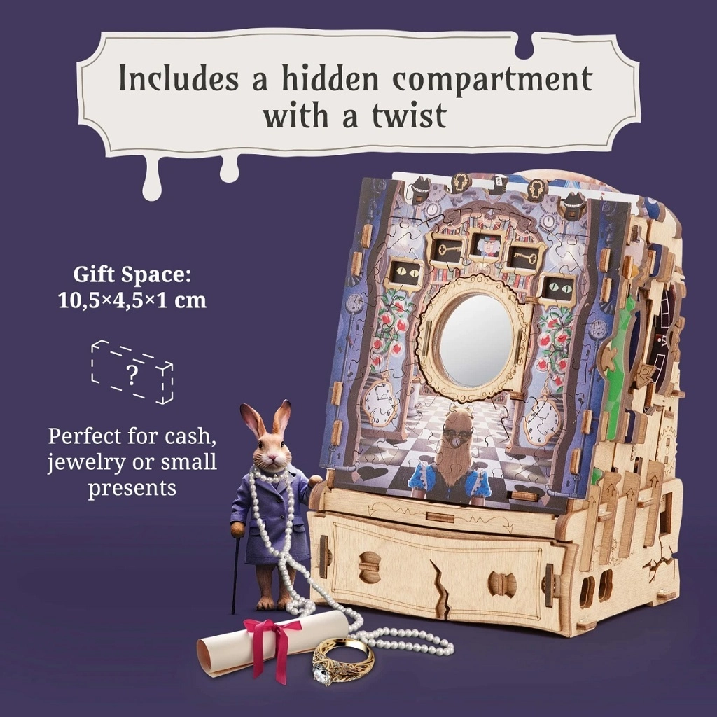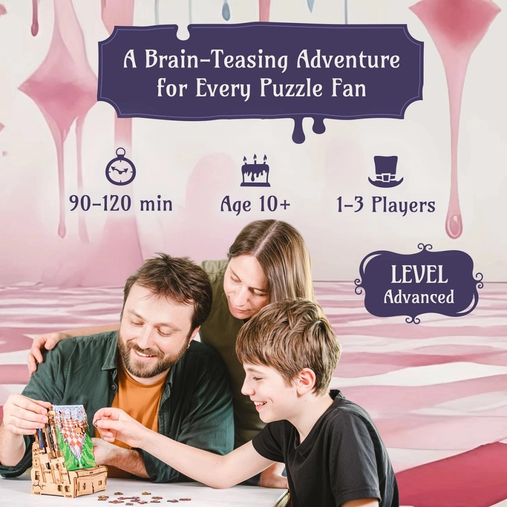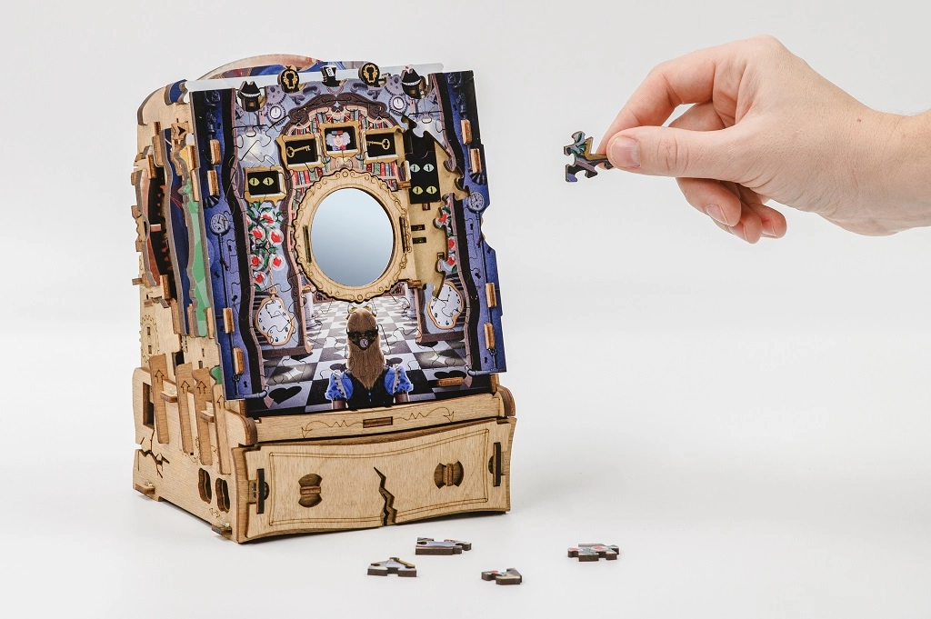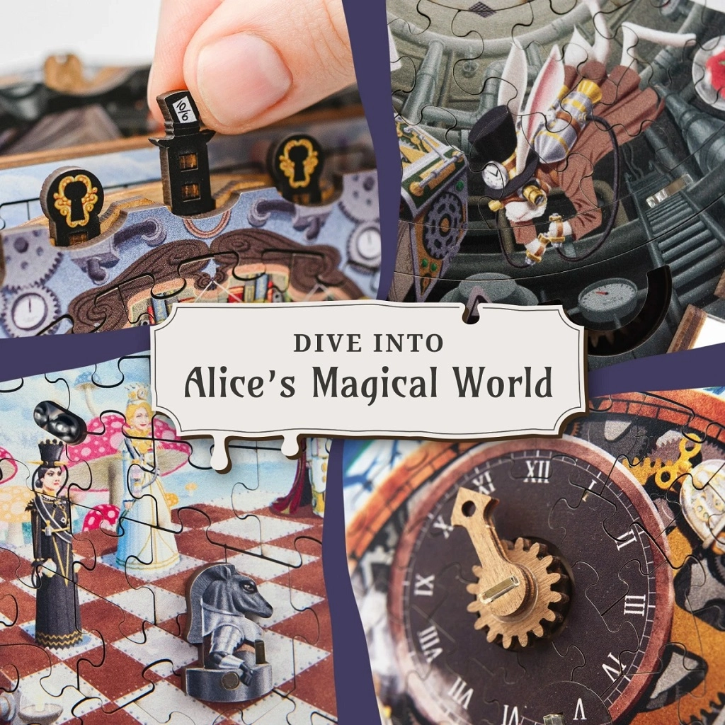 Plongez dans l’imaginaire avec le casse-tête en bois iDventure, qui associe puzzle classique et mécanismes ingénieux d’escape box. En assemblant de magnifiques scènes illustrées inspirées d’ALICE AU PAYS DES MERVEILLES, vous découvrirez des indices cachés, résoudrez des énigmes logiques et déverrouillerez pas à pas une boîte mystérieuse dotée d’un compartiment secret.