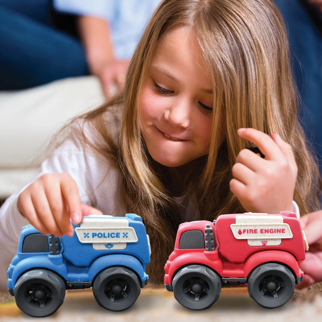 Ce set compact de véhicules en bioplastique de LEXIBOOK est idéal pour les petites mains et le jeu quotidien à la maison comme à la maternelle. Les couleurs vives, les marquages lisibles POLICE et FIRE ENGINE et la conception durable invitent aux jeux de rôle de secours et de police, développent la coordination œil–main et stimulent l’imagination.