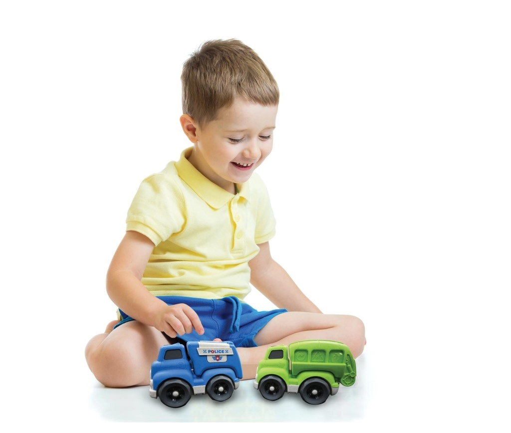 Les véhicules sont partiellement fabriqués en bioplastique à base de paille de blé, ce qui réduit l’empreinte écologique et offre un choix de jouets plus durable.