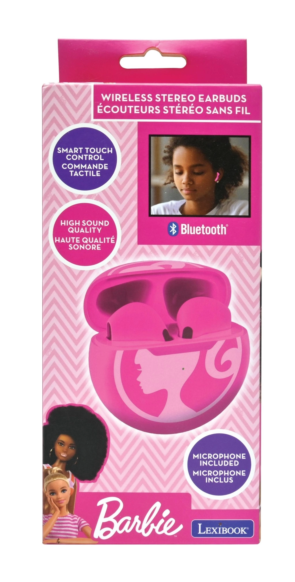 - Design stylé – finition rose avec logo BARBIE iconique sur les écouteurs et l’étui.