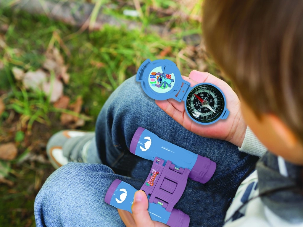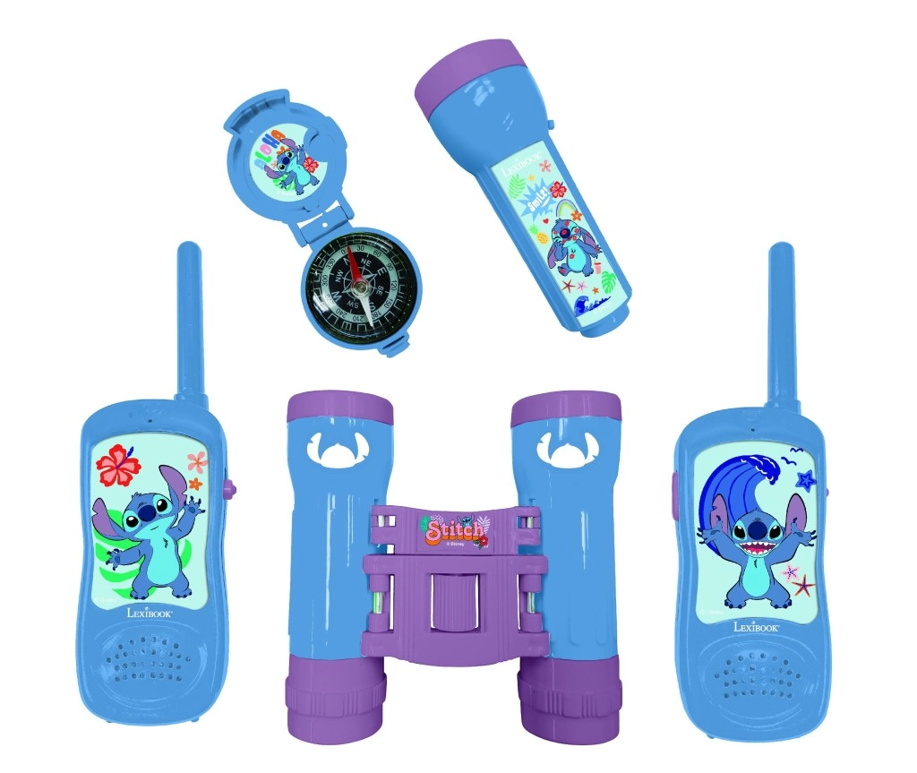 Avec ce kit thématique LEXIBOOK STITCH, les enfants partent à l’aventure. La paire de talkies-walkies encourage le jeu d’équipe et la communication, les jumelles rapprochent les détails de la nature, la lampe de poche éclaire chaque recoin et la boussole aide à s’orienter. Le tout dans un design bleu-violet assorti avec motifs STITCH et l’inscription « Aloha » sur la boussole.