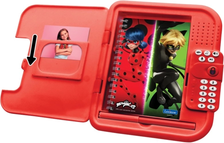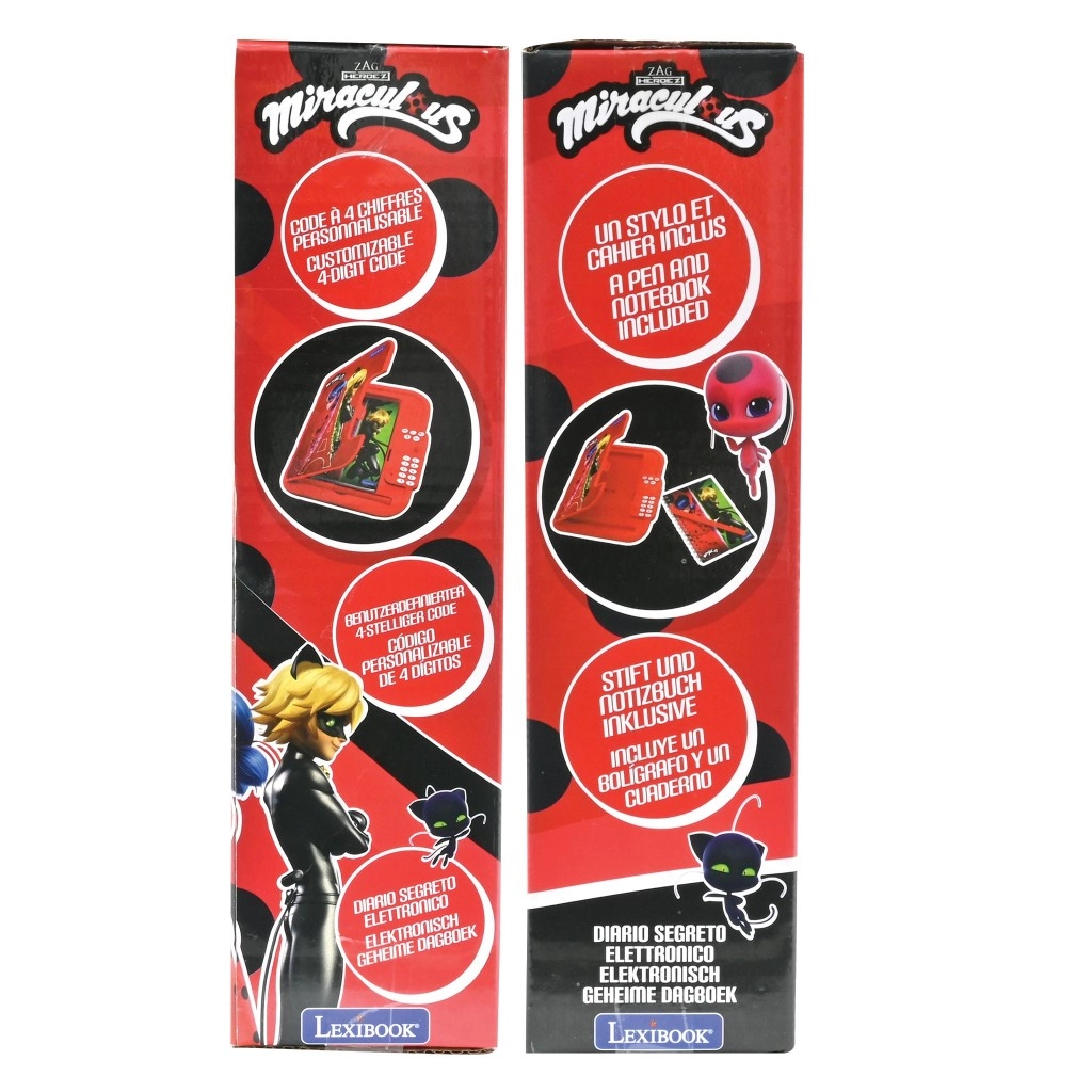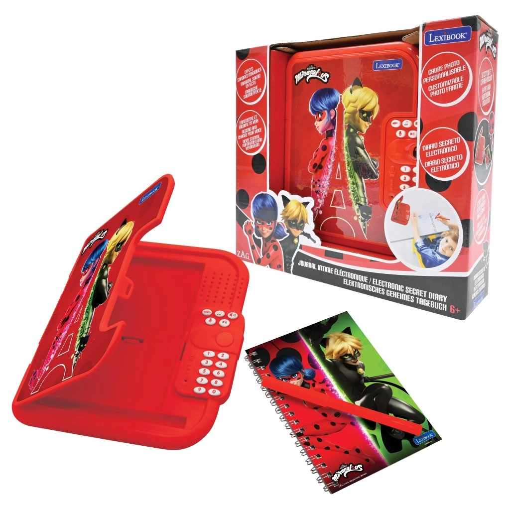 Le journal secret électronique Lexibook ravira tous les fans de MIRACULOUS. Son boîtier rouge robuste avec les graphismes de Ladybug et Chat Noir protège vos écrits, tandis que le clavier à code 4 chiffres assure votre intimité. Le haut-parleur intégré offre des sons et lectures, et la prise de son permet d’enregistrer des messages et des notes personnelles.