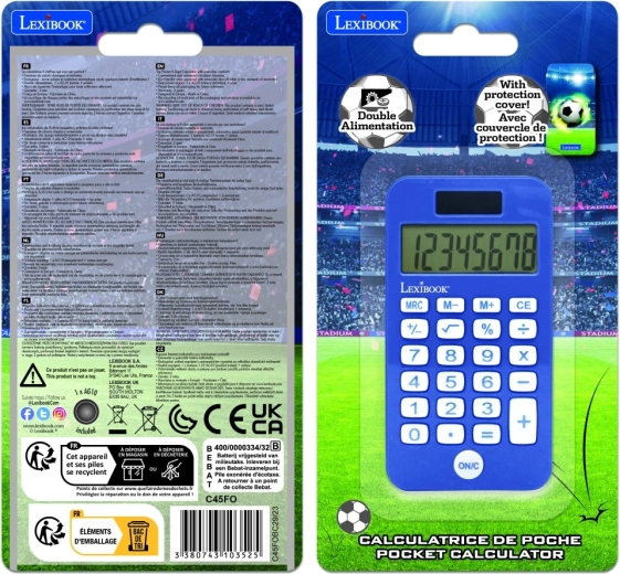 Vous cherchez un accessoire pratique et amusant pour l’école ? La calculatrice de poche Lexibook au design football ravira les jeunes fans de sport tout en facilitant les calculs du quotidien. Ses dimensions compactes se glissent dans une poche ou un cartable, pour l’avoir toujours à portée de main.