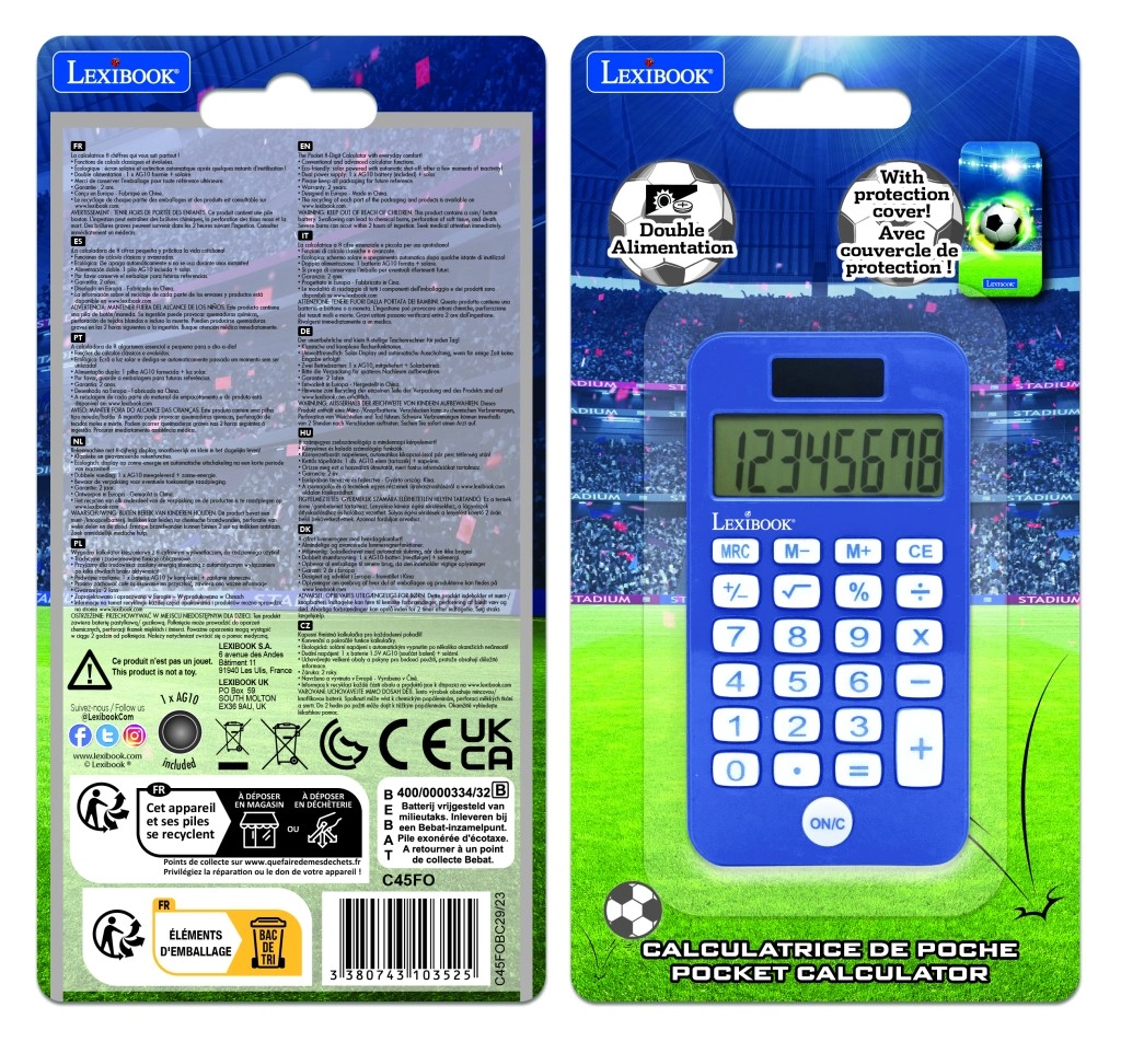 La calculatrice pour enfants Lexibook au motif de football est compacte, légère et idéale pour l’école comme pour les devoirs à la maison. Elle propose des fonctions mathématiques de base, des touches claires et lisibles et une utilisation immédiate grâce à la pile fournie. Sa conception en plastique résistant et son design attrayant motivent les enfants à apprendre de manière ludique.