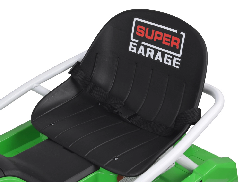 La conception à 5 roues est pensée pour des dérapages maîtrisés et un drift spectaculaire : petites roues avant pour tourner facilement, double roue arrière pour la stabilité et roue motrice centrale en caoutchouc pour une transmission de puissance fluide. Le châssis métallique renforcé augmente la robustesse et la stabilité, tandis que la ceinture de sécurité, l’assise basse et les protections latérales offrent davantage de sécurité et de confort.