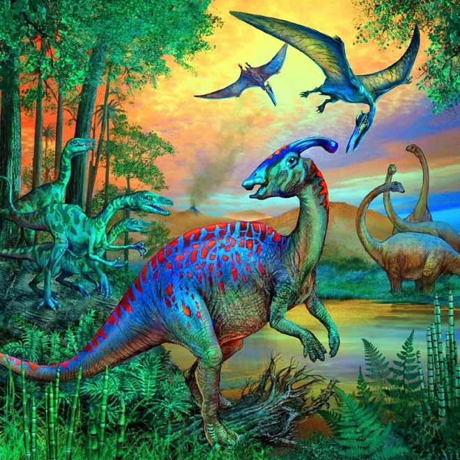 Le coffret contient 3 puzzles distincts de 49 pièces chacun, avec des motifs variés de dinosaures – plus de divertissement et de défis pour les enfants dès 5 ans.